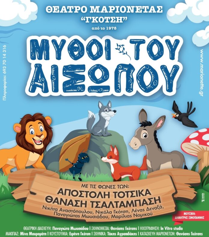 Οι «μύθοι του Αισώπου», από το Θέατρο Μαριονέτας Γκότση, έρχονται στον Βόλο την Κυριακή 5 Δεκεμβρίου στον Κιν/Θέατρο «ΑΧΙΛΛΕΙΟΝ» με δύο παραστάσεις, στις 12 το μεσημέρι και στις 5.00 το απόγευμα. Σύμφωνα με σχετική ανακοίνωση η ηχογράφηση έγινε στο In Vitro studio με τις φωνές των Θανάση Τσαλταμπάση και τον Αποστόλη Τότσικα, ενώ ακούγονται οι Μαρίλια Νομικού, Παναγιώτα Μωυσιάδου, Νικήτας Αναστόπουλος, Νικόλας Γκότσης, Λένα Δεναξά.