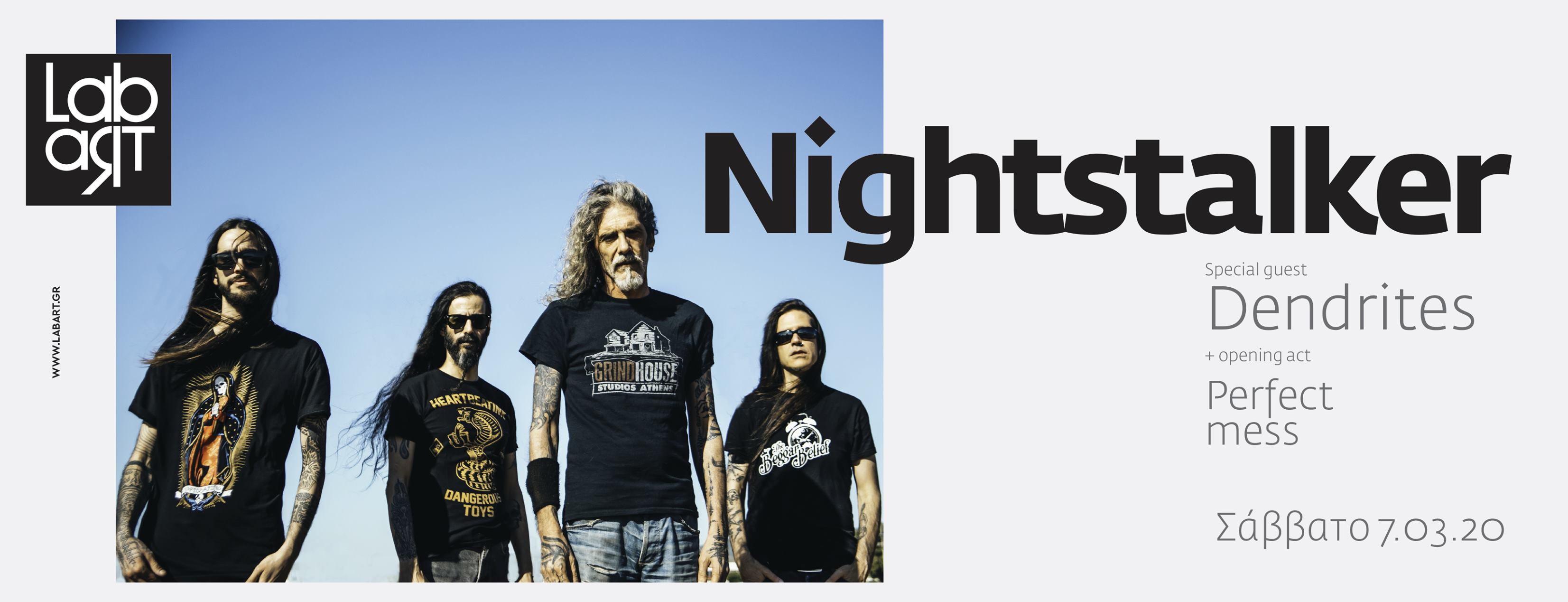 H μακροβιότερη παρουσία στο ελληνικό ροκ ήχο είναι από την Αθήνα και ακούει στο όνομα Nightstalker. Η θρυλική rock μπάντα επιστρέφει μετά από δυο χρόνια στη σκηνή του Lab Art το Σάββατο 7 Μαρτίου για να γιορτάσει την κυκλοφορία του νέου της δίσκου “Great Hallucinations”.