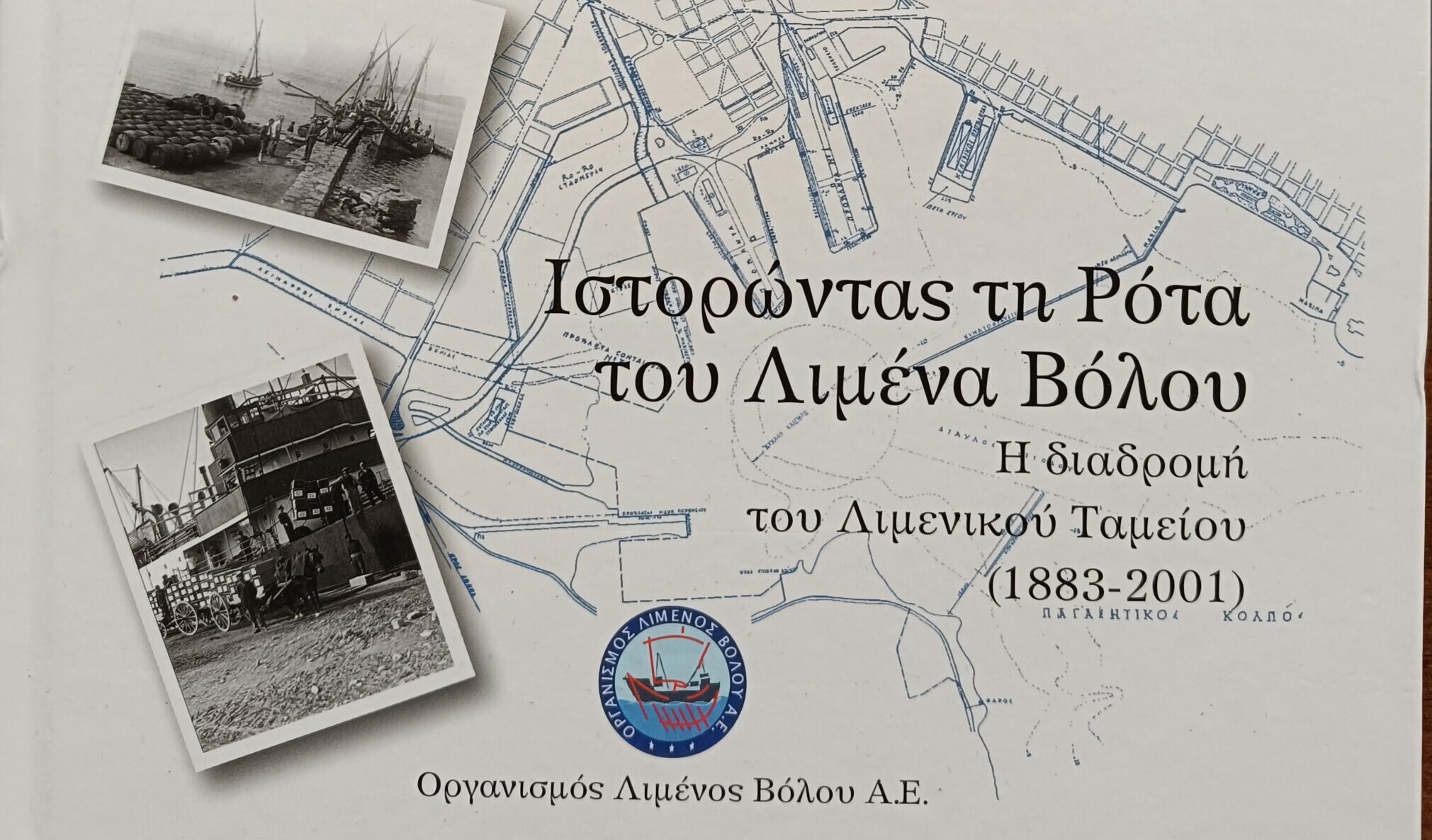 Την Τετάρτη 22 Οκτωβρίου και ώρα 18:30, στο ξενοδοχείο ΞΕΝΙΑ Βόλου (Πλαστήρα 1), θα παρουσιαστεί το βιβλίο – λεύκωμα με τίτλο «Ιστορώντας τη Ρότα του Λιμένα Βόλου: Η διαδρομή του Λιμενικού Ταμείου (1883–2001)» της ερευνήτριας Μαρίας Σπανού.