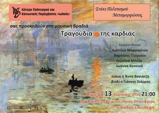 Μουσική εκδήλωση : «Τραγούδια της καρδιάς»