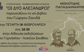 “Οι Δύο Αλέξανδροι” παρουσιάζουν το βιβλίο του Γ. Σανιδά “Μωραϊτίδης – Παπαδιαμάντης” – Οι διόσκουροι της νεώτερης Λογοτεχνίας»