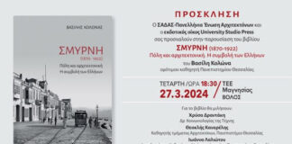 Παρουσιάζεται στον Βόλο το βιβλίο του Βασίλη Κολώνα «Σμύρνη [1870-1922] Πόλη...