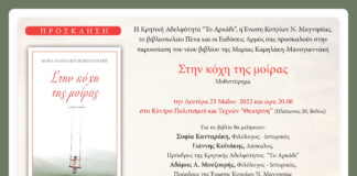 Παρουσίαση του βιβλίου «Στην κόχη της μοίρας» της Μαρίας Καμηλάκη- Μανογιαννάκη
