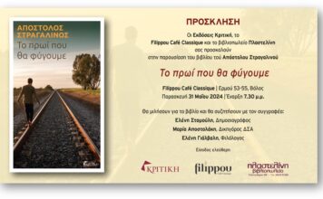Ο Βολιώτης συγγραφέας Απ. Στραγαλινός παρουσιάζει το βιβλίο του «Το πρωί που θα φύγουμε»