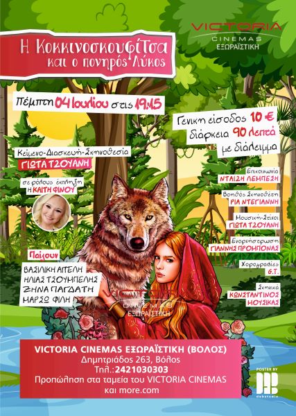 Ακυρώνεται εξαιτίας των δυσμενών καιρικών συνθηκών η παιδική παράσταση “Η κοκκινοσκουφίτσα και ο πονηρός λύκος” που ήταν προγραμματισμένη να ανέβει σήμερα στο Cine Εξωραϊστική, στον Βόλο. Όπως αναφέρεται από τους διοργανωτές η sold out παράσταση θα πραγματοποιηθεί σε νέα ημερομηνία, που θα ανακοινωθεί τις προσεχείς ημέρες.