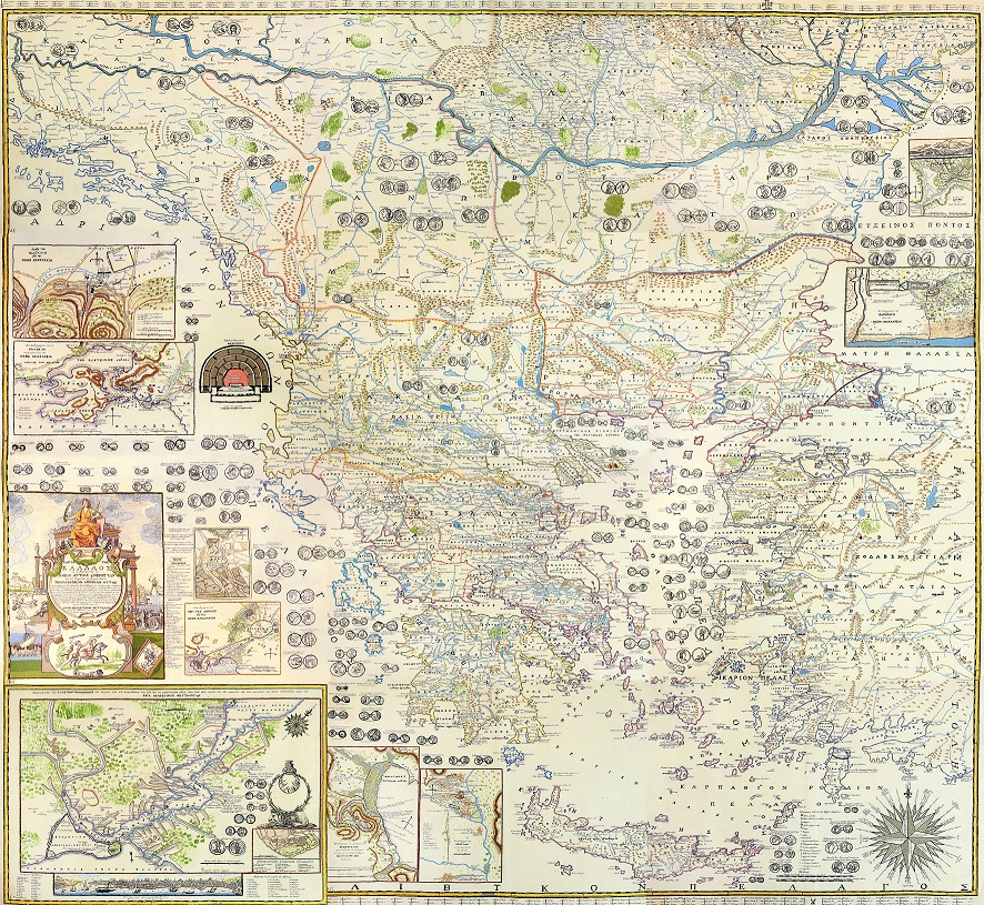 Η υλοποίηση της πρωτοβουλίας αυτής του Λυκείου των Ελληνίδων Βόλου, φιλοτεχνήθηκε δια μέσου του τμήματος κεντητικής των εργαστηρίων παραδοσιακών τεχνών (υφαντική, κεντητική, πλεκτική, κοπτική-ραπτική), που το υπεραιωνόβιο σωματείο έχει ανασυστήσει τα τελευταία χρόνια και λειτουργεί με επιτυχία. Η Χάρτα αποτελεί ένα πρωτοφανές -για την εποχή- εκδοτικό εγχείρημα και ένα μεγαλόπνοο έργο που αντανακλά την έκταση αλλά και την ακτινοβολία του αρχαίου και του νεότερου ελληνισμού, άρρηκτα συνδεδεμένη με τη μεγάλη επέτειο της Ελληνικής Επανάστασης του 1821. Το μεγάλο αυτό έργο της χειροτεχνίας, απαρτίζεται από 12 φύλλα, τα οποία κεντήθηκαν από ισάριθμες κεντήστρες με παραδοσιακές βελονιές, που κρίθηκαν προσφορότερες για την απόδοση των λεπτομερειών. Η Χάρτα καταγράφει την προσδοκία για την Επανάσταση. Απαρτίζεται από άπειρα σύμβολα. Απεικονίζει τον ελλαδικό χώρο και τη βαλκανική χερσόνησο, νότια του Δούναβη. Περιλαμβάνει επιπεδογραφίες αρχαίων πόλεων, όπως την Κωνσταντινουπόλεως με τη συμβολική παράσταση του λιονταριού, της Φεράς «νυν λεγομένης Βελεστίνος», της Σπάρτης κ. ά. Επίσης, μεσαιωνικά νομίσματα συνοδευόμενα από σχόλια για την προέλευσή τους, αρχαία τοπωνύμια, μυθολογικές και συμβολικές παραστάσεις, μια κάτοψη αρχαίου θεάτρου, κατάλογο σοφών και ηγεμόνων της εποχής και πολλά άλλα ενδιαφέροντα. Πρόκειται για ένα από τα πιο σημαντικά έργα του Nεοελληνικού Διαφωτισμού και σημείο αναφοράς όχι μόνο για την ιστορία της ελληνικής χαρτογραφίας αλλά και για τη διαμόρφωση των ιδεών που ενέπνευσαν την Επανάσταση της Εθνεγερσίας.