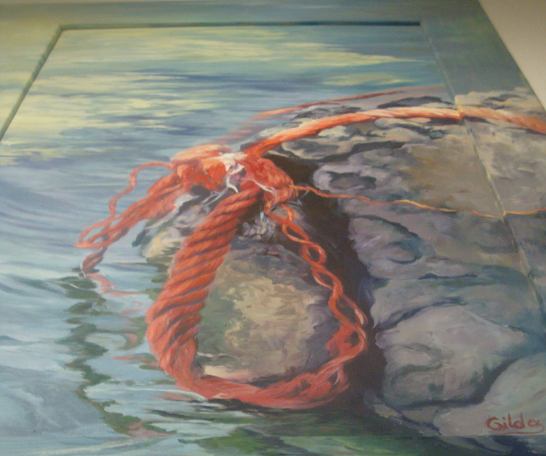 ¨Στο έργο της Gilda Frumkin, ο άνθρωπος είναι παρών μέσα από το πέρασμα του. Συναντάμε κουπιά, σημαδούρες ή σκοινιά κάβων ριγμένα –βαριές αλυσίδες– που ταξιδεύουν όλα γητεμένα μέσα στον μεταφυσικό ρεαλισμό τους. Η πινελιά εκφράζεται αλλού ιμπρεσσιονιστική, πότε διαστρεβλώνει τον ρεαλισμό της και γίνεται αφαίρεση, ένα εικαστικό περιβάλλον, όπου ο συμβολισμός της εικόνας συναντά τον εξπρεσιονισμό του συναισθήματος και γεννούν μαζί μια πρωτόγνωρη υπαρξιακή κατάσταση· με τον λυρισμό και την καλλιτεχνική ευαισθησία να υπογραμμίζουν την αξία της διαδρομής…