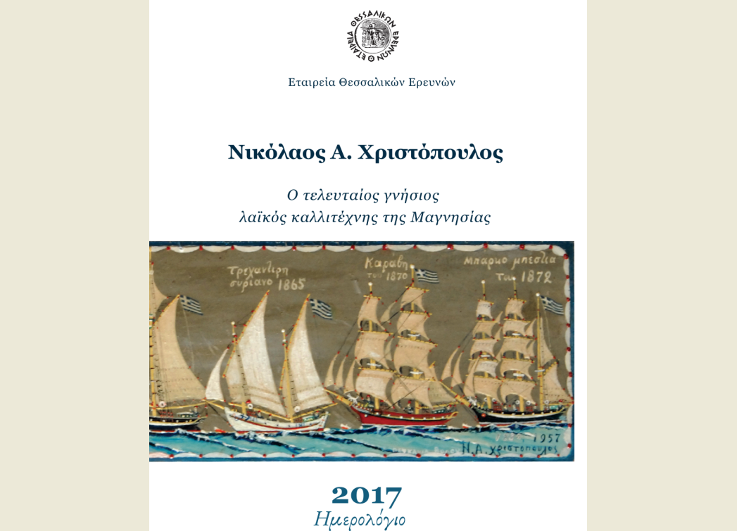 Η Εταιρεία Θεσσαλικών Ερευνών με την υποστήριξη Οργανισμού Λιμένος Βόλου και τον πολιτιστικό φορέα της Ιεράς Μητροπόλεως Δημητριάδος «Μαγνήτων Κιβωτός» επέλεξε να τιμήσει στην έκδοση αυτή του θεματικού της ημερολογίου για το 2017 ένα γνήσιο λαϊκό καλλιτέχνη της Μαγνησίας που έχει αποτυπώσει ένα μεγάλο κομμάτι της ναυτικής παράδοσης της Μαγνησίας και όχι μόνο.