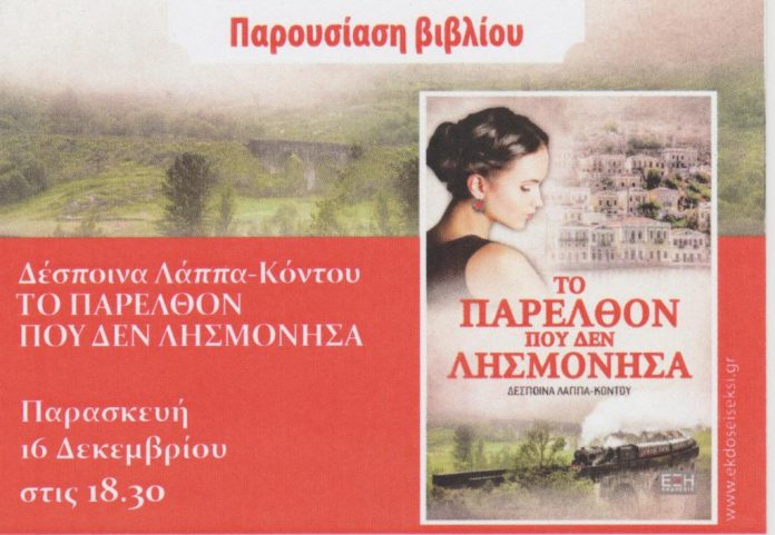 Ο Σύλλογος αποφοίτων Γαλλικής Σχολής Βόλου Saint Joseph, το Κέντρο Βιβλίου Μαγνησιωτών Συγγραφέων, το βιβλιοπωλείο “Πένα” και οι εκδόσεις ΕΞΗ διοργανώνουν την παρουσίαση του βιβλίου “Το παρελθόν που δεν λησμόνησα” της Δέσποινας Λάππα- Κόντου στη Γαλλική Σχολή Saint Joseph, Σπυρίδη 130, Βόλος) την Παρασκευή 16 Δεκεμβρίου, στις 18.30.