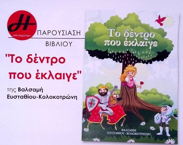 Την Τετάρτη 22 Νοεμβρίου 2017 η κα. Βαλσαμή Ευσταθίου – Κολοκοτρώνη παρουσίασε στο προσωπικό και τα παιδιά του Κέντρου Δημιουργικής Απασχόλησης Παιδιών με Αναπηρία (ΚΔΑΠ-μεΑ) Ν. Ιωνίας, το παραμύθι με τίτλο: «Το δέντρο που έκλαιγε».