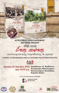 Μία εκ των κορυφαίων δράσεων αποτελεί και το δίτομο λεύκωμα 1126 σελίδων με πλήρη αναφορά στην ιστορία του Συνεταιρισμού από το 1916 ως το 2016. Η έκδοση θα παρουσιαστεί στο αμφιθέατρο του Πανεπιστημίου Θεσσαλίας «Γιάννης Κορδάτος» στο συγκρότημα Παπαστράτου στη παραλία του Βόλου, στις 23 Απριλίου 2018 και ώρα 19:30. Για το έργο απασχολήθηκε μια μεγάλη ομάδα επιστημόνων και ειδικών, υπό την καθοδήγηση του Δρ Αλέξανδρου Καπανιάρη και του Διονυσίου Βαλασσά που υπογράφουν την έκδοση. Η ομάδα αποτελείται από τους Πολίτη Αντώνιο, Παναγιώτη Σαράφη, Πέτρο Βελέντζα, Ιωάννη Γκλαβάτο, Αχιλλέα Γκλαβάτο, Χαράλαμπο Ψιμόπουλο, Βασίλειο Μπιρλιράκη, Ευάγγελο Τσιάμη, Σοφία Ξυνογαλά, Βασίλειο Αγιοπετρίτη, Νικόλαο Διαμαντάκο, Εμμανουήλ Γκαγκάκη. Την καλλιτεχνική επιμέλεια ανέλαβε η Αποστολία Παλάσκα εκ μέρους των «Γραφικών Τεχνών ΠΑΛΜΟΣ» που είχαν και την τελική επιμέλεια της εκτύπωσης. Το δίτομο έργο κοσμούν πίνακες και σκίτσα από την αγροτική καθημερινότητα της περιοχής, καλλιτεχνικής έμπνευσης του Ζαγοριανού ζωγράφου Κώστα Κομνηνού. Η έκδοση είναι εγκιβωτισμένη σε ειδικό κουτί και συνοδεύεται επίσης από το ιστορικό ντοκιμαντέρ «με τα τσαπιά και με τα θκέλια», παραγωγής του Συνεταιρισμού και σκηνοθεσίας του Γιώργου Λάγδαρη, που παρουσιάστηκε για πρώτη φορά το 2016 και έπειτα από κρίση είχε δύο διεθνείς συμμετοχές σε φεστιβάλ ελληνικού κινηματογράφου στο Λονδίνο και στο Λος Άντζελες. Το Δ.Σ. του Συνεταιρισμού στήριξε σθεναρά την προσπάθεια αυτή, έχοντας τη προσδοκία ότι το σύνολο του έργου θα αποτελέσει εφαλτήριο για τις νέες γενιές συνεταιριστών ώστε να αναλάβουν τις ευθύνες που τους αναλογούν και οδηγό τους, καθώς η ιστορία μπορεί να είναι δίδαγμα για το μέλλον. Για την προσπάθεια ήταν ενήμερη και η Γενική Συνέλευση των μελών που υποστήριξαν το σύνολο των δράσεων.