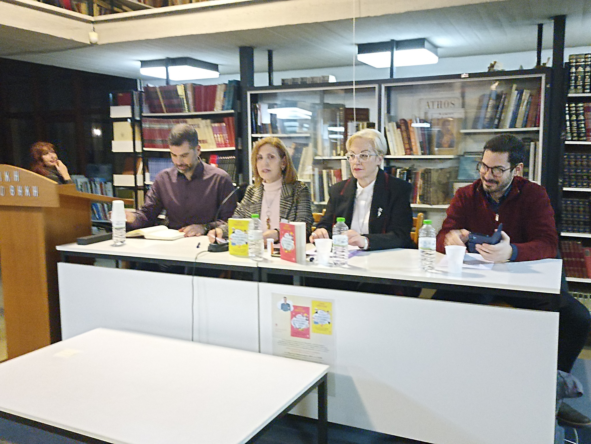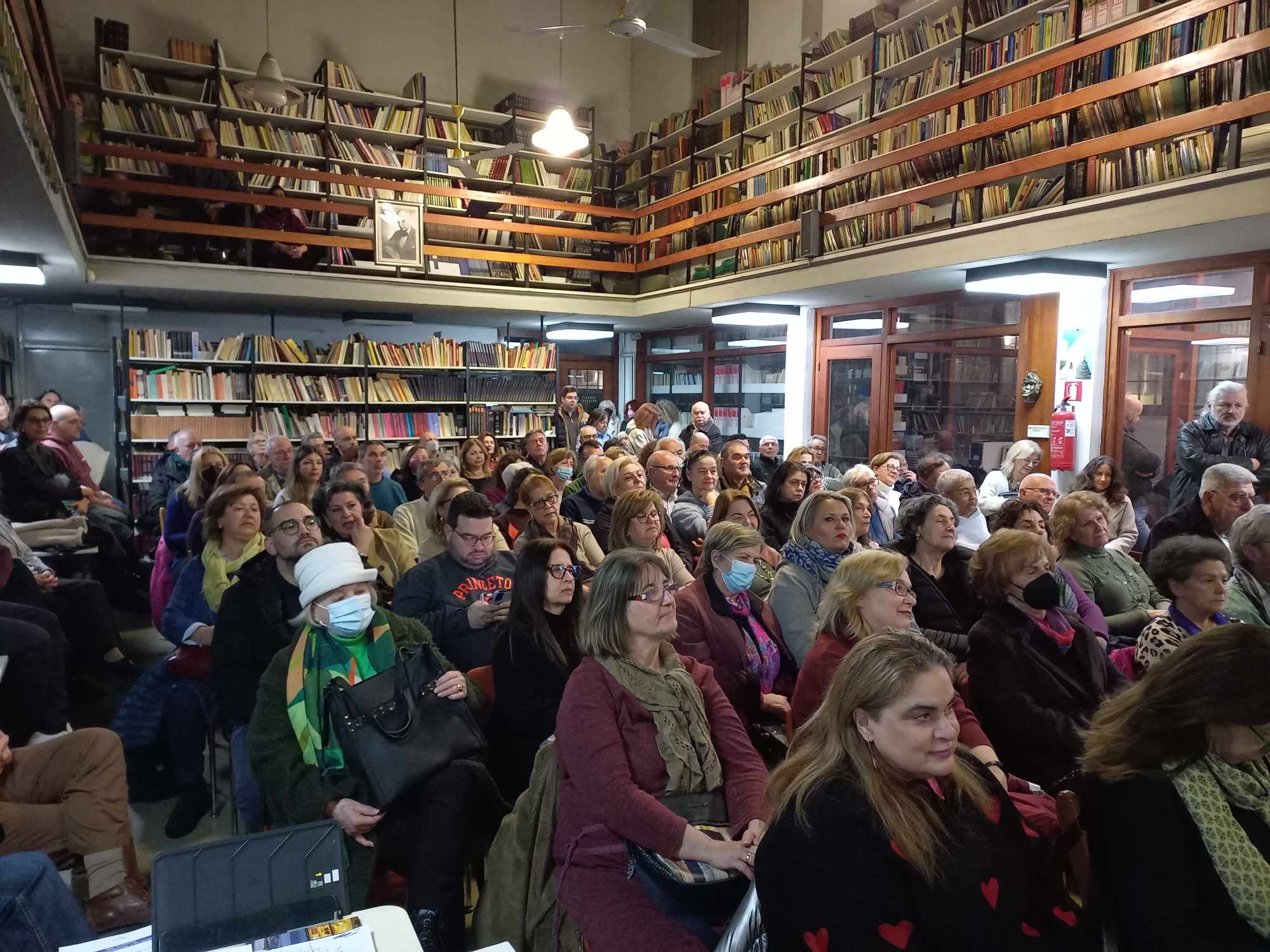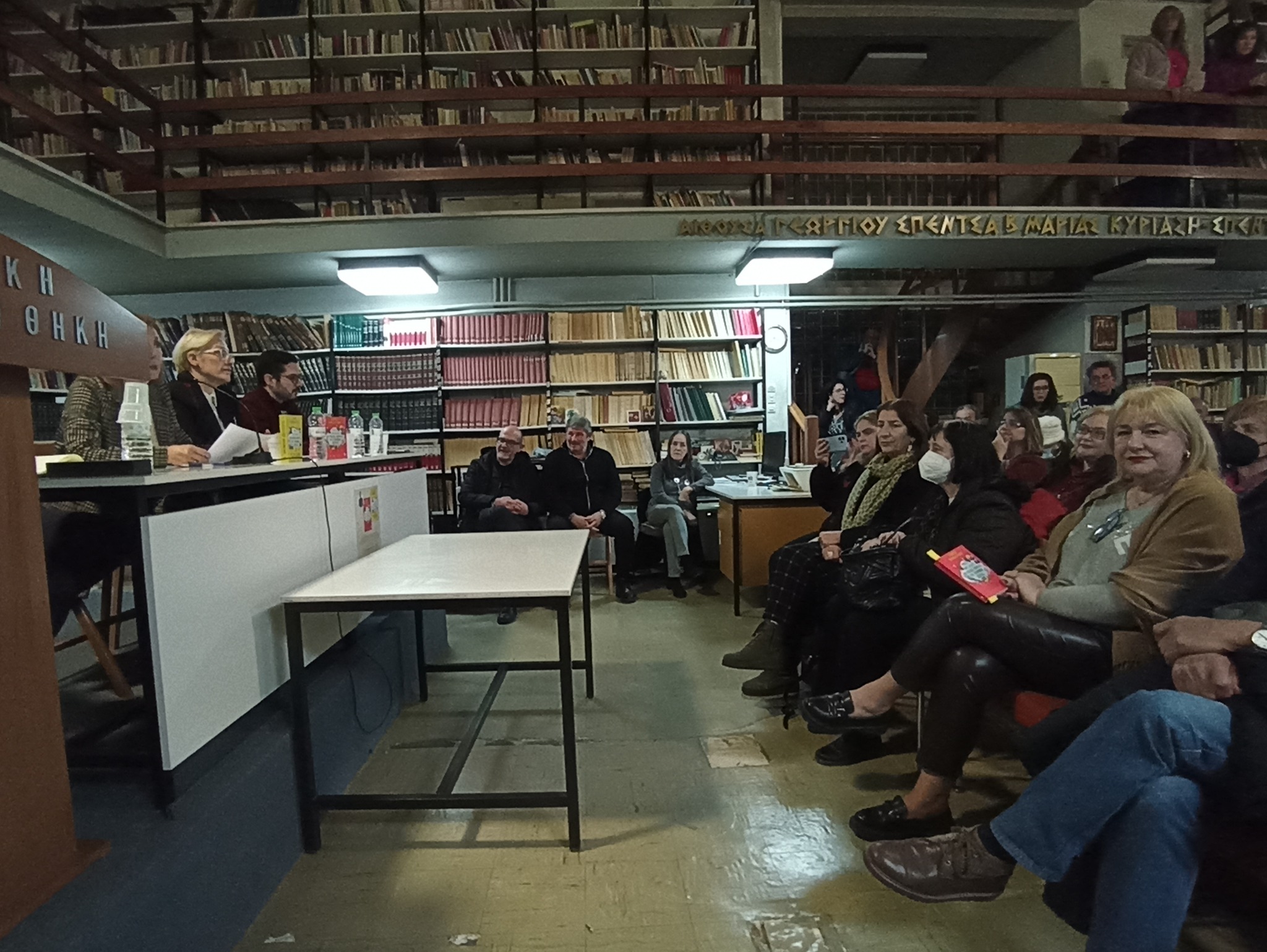 Οι παρουσιαστές του βιβλίου κ.κ. Νατάσα Οικονόμου και Δημήτρης Σκαλτσής καθήλωσαν το κοινό, ενώ ήταν τόσο έντονο το ενδιαφέρον, που πολλοί από τους παρευρισκόμενους παρακολούθησαν την παρουσίαση στον εξώστη της Βιβλιοθήκης.