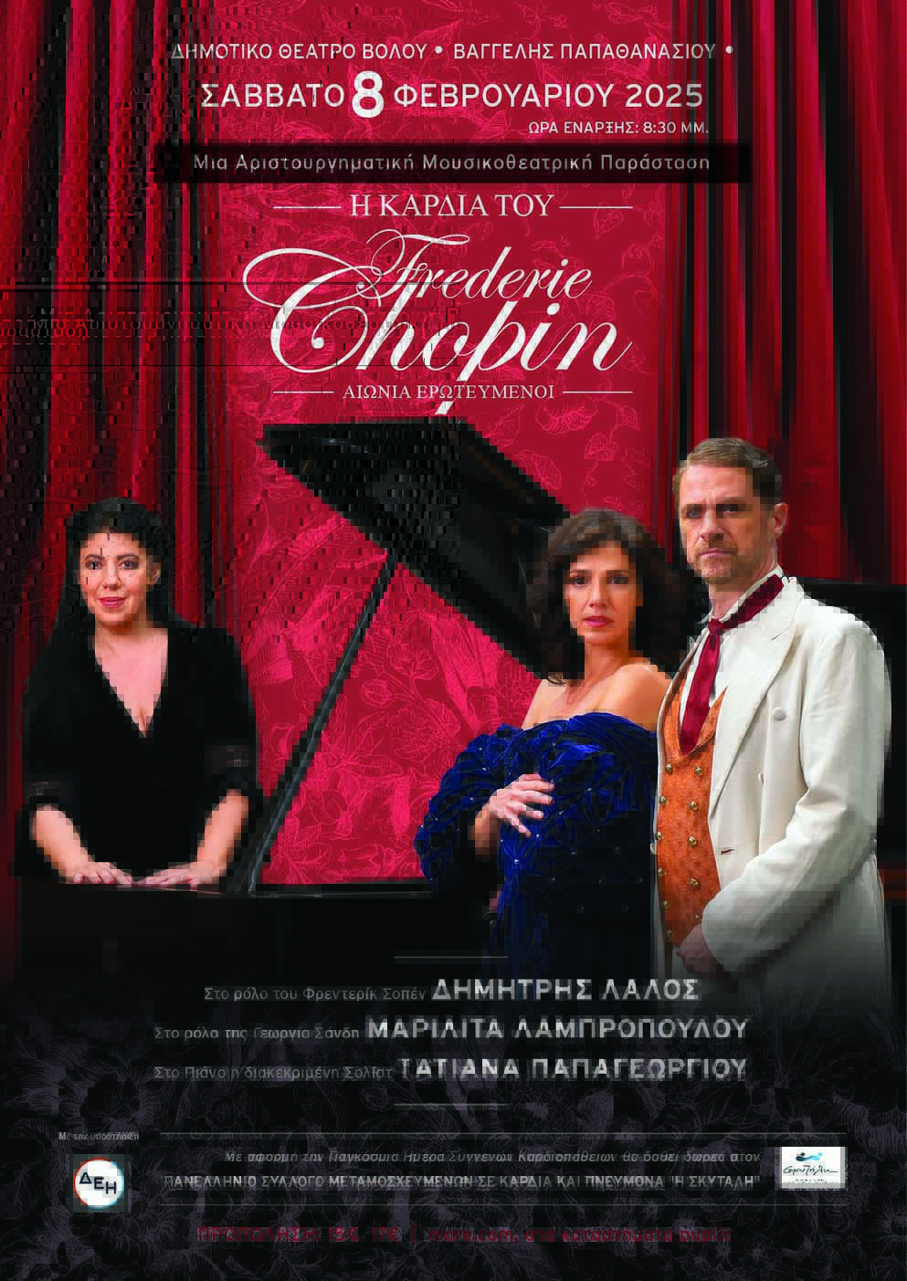 – Σάββατο 8 Φεβρουαρίου 2025, «Η Καρδιά του Σοπέν», παράσταση θεατρική με πρωταγωνιστές τον Δημήτρη Λάλο και την Μαριλίτα Λαμπροπούλου. Στο πιάνο, η Τατιάνα Παπαγεωργίου.