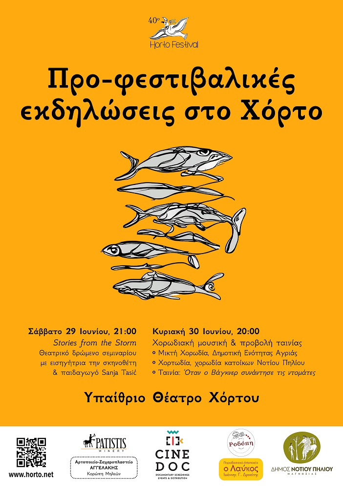 Η κ. Ελένη Χρυσοπούλου, από το Cine doc Βόλου θα προλογίσει την ταινία και η ΧορΤωδία (το χορωδιακό σύνολο που απαρτίζεται από κατοίκους της περιοχής του Νοτίου Πηλίου) με την Μικτή Χορωδία Αγριάς θα πλαισιώσουν μουσικά την εκδήλωση υπό τη διεύθυνση του μαέστρου Νίκου Αδρασκελα.