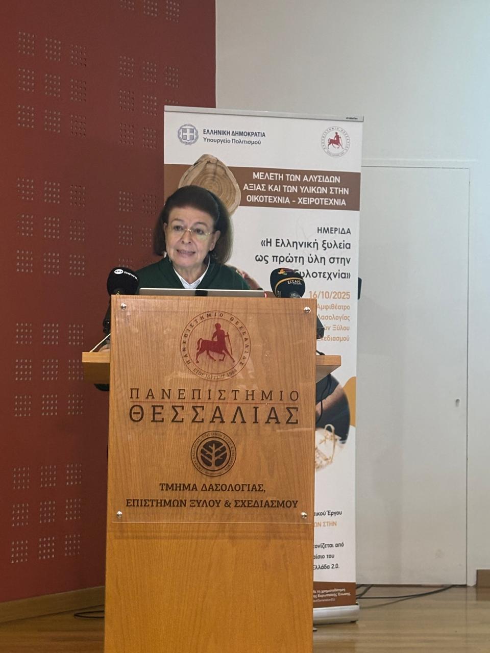 Το Λύκειο των Ελληνίδων Βόλου συμμετείχε, την περασμένη Τετάρτη 12 Νοεμβρίου, στην πετυχημένη ημερίδα, η οποία πραγματοποιήθηκε στην Καρδίτσα από το Υπουργείο Πολιτισμού και το Πανεπιστήμιο Θεσσαλίας, με θέμα «Η Χειροτεχνία ως μοχλός ανάπτυξης των τοπικών κοινωνιών». Οι εργασίες της, που έγιναν με τη συμμετοχή της Υπουργού Πολιτισμού κ. Λίνας Μενδώνη- στο Αμφιθέατρο του Τμήματος Δασολογίας, Επιστημών Ξύλου και Σχεδιασμού του Π.Θ., επικεντρώθηκαν στον πολλαπλό ρόλο της χειροτεχνίας. «Δεν μας ενδιαφέρει η χειροτεχνία ως μουσειακό είδος. Μας ενδιαφέρει ως ζωντανό κύτταρο δημιουργίας, ως ένα βιώσιμο αναπτυξιακό πρότυπο, που αντλεί δύναμη από τις παραδοσιακές πρακτικές και μετατρέπεται σε μοχλό ανάπτυξης, απασχόλησης και αναζωογόνησης της ελληνικής περιφέρειας», τόνισε, μεταξύ άλλων, η κ. Λ. Μενδώνη, αφού εξήρε τη συνεργασία του Υπουργείου με τρία ακαδημαϊκά ιδρύματα, το Πανεπιστήμιο Θεσσαλίας, το Πανεπιστήμιο Δυτικής Αττικής και το Πανεπιστήμιο της Δυτικής Μακεδονίας για το εκπαιδευτικό πρόγραμμα των ΚΕΔΙΒΙΜ τους για την Ελληνική Χειροτεχνία.