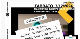 Προβολή του βραβευμένου ντοκιμαντέρ «LESVIA» στη Νέα Ιωνία