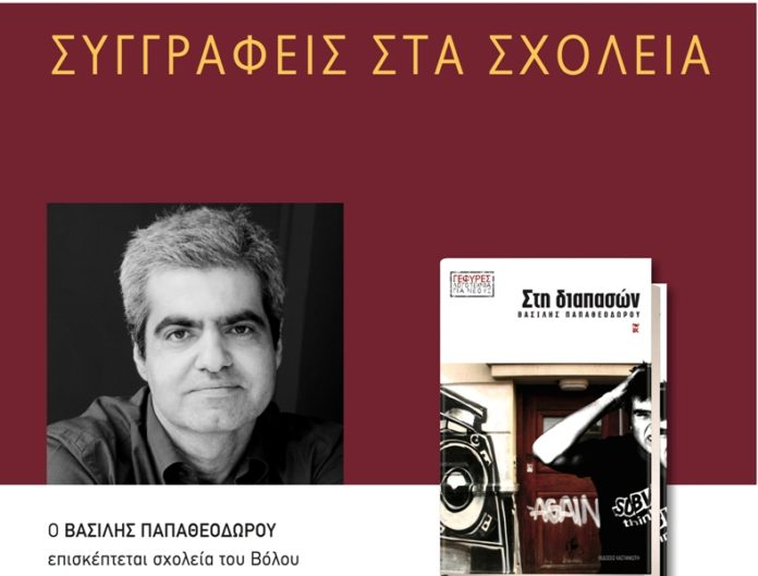 Σχολεία της περιοχής μας θα επισκεφθεί ο συγγραφέας Βασίλης Παπαθεοδώρου για να συνομιλήσει με τους μαθητές τους εκπαιδευτικούς και τους γονείς, με αφορμή τα βιβλία του «Στη Διαπασών» και το «Ημερολόγιο ενός δειλού».