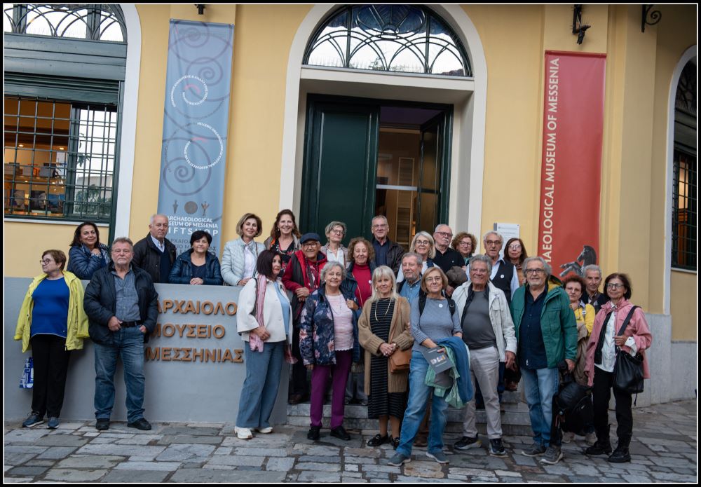 Μέλη και φίλοι του Συλλόγου Φίλων Διαχρονικού Μουσείου Λάρισας επισκέφτηκαν αρχαιολογικούς χώρους και μνημεία της Μεσσηνίας, από την Παρασκευή έως την Κυριακή 17 – 19 Οκτωβρίου 2025. «Την Παρασκευή το απόγευμα περιηγηθήκαμε το Αρχαιολογικό Μουσείο στην Καλαμάτα, όπου ξεναγηθήκαμε από την Αρχαιολόγο της Εφορείας Αρχαιοτήτων Μεσσηνίας κα Μαρία Κυλάφη. Το Αρχαιολογικό Μουσείο Μεσσηνίας στεγάζεται στο ανακατασκευασμένο κτήριο της παλαιάς Δημοτικής Αγοράς της πόλης. Η μόνιμη έκθεσή του, που είναι οργανωμένη σε τέσσερις γεωγραφικές ενότητες – Καλαμάτα, Μεσσήνη, Τριφυλία, Πύλος –, παρουσιάζει την πολιτιστική ιστορία των περιοχών της Μεσσηνίας, από την 5η χιλιετία έως το 1453 μ. Χ., στις οποίες εντάσσονται οι σημαντικότερες αρχαιολογικές θέσεις με αντιπροσωπευτικά ευρήματα, τα οποία προέρχονται είτε από ανασκαφές, είτε από επιφανειακές έρευνες ή και από παραδόσεις αρχαίων από τους πολίτες.