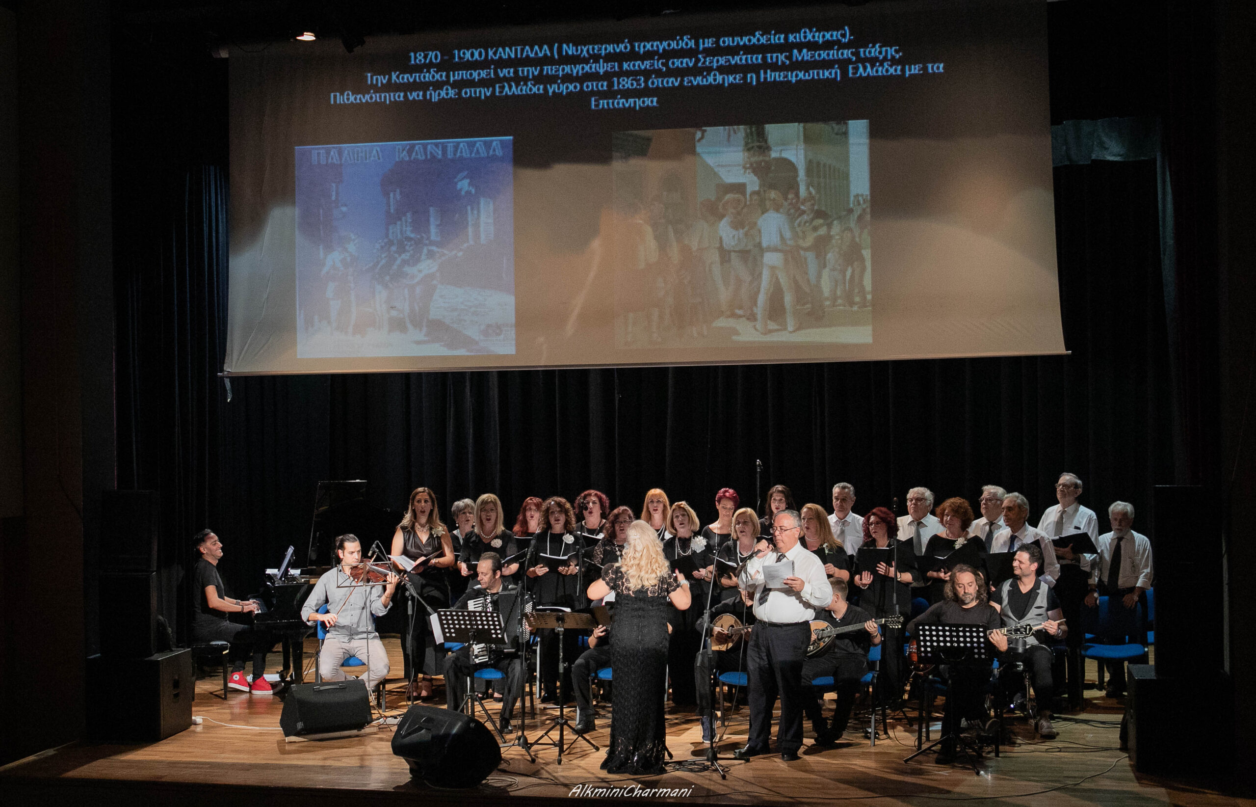 Η χορωδία, υπό την διεύθυνση της μαέστρου Κατερίνας Αποστολοπούλου – Μακρή , θα παρουσιάσει στο πρόγραμμά της τραγούδια των Μ. Χατζιδάκι και Μ. Θεοδωράκη. Συνοδεύουν στο πιάνο ο Στέφανος Τραγουδάρας και στο μπουζούκι η μαθήτρια της Σχολής Χριστίνα Κουτσοβαγγέλη .