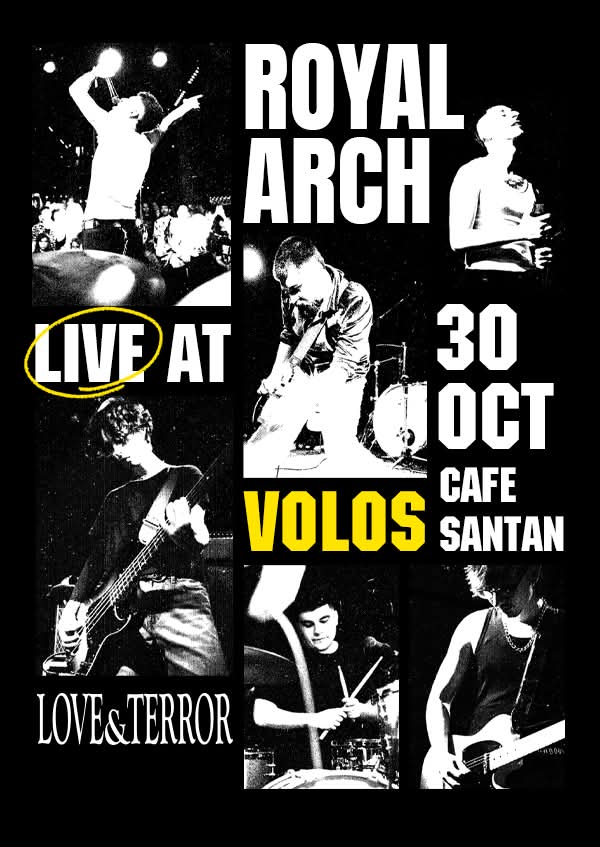 Το πολυαναμενόμενο ντεμπούτο άλμπουμ των Royal Arch, «Love & Terror» μόλις κυκλοφόρησε και έχει αγαπηθεί από Ελλάδα και εξωτερικό! Η πρώτη τους στάση στο πλαίσιο της περιοδείας τους δεν θα μπορούσε να είναι αλλού πέρα από το Cafe Santan της πόλης του Βόλου, μιας και δύο από τα μέλη τους κατάγονται από το Τρίκερι!