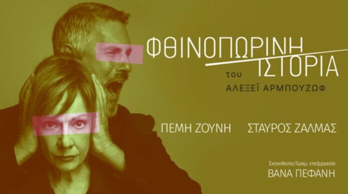Η Πέμη Ζούνη και ο Σταύρος Ζαλμάς μαζί, στο σημαντικό και με διεθνή επιτυχία θεατρικό έργο, «Φθινοπωρινή Ιστορία» σε σκηνοθεσία Βάνας Πεφάνη.