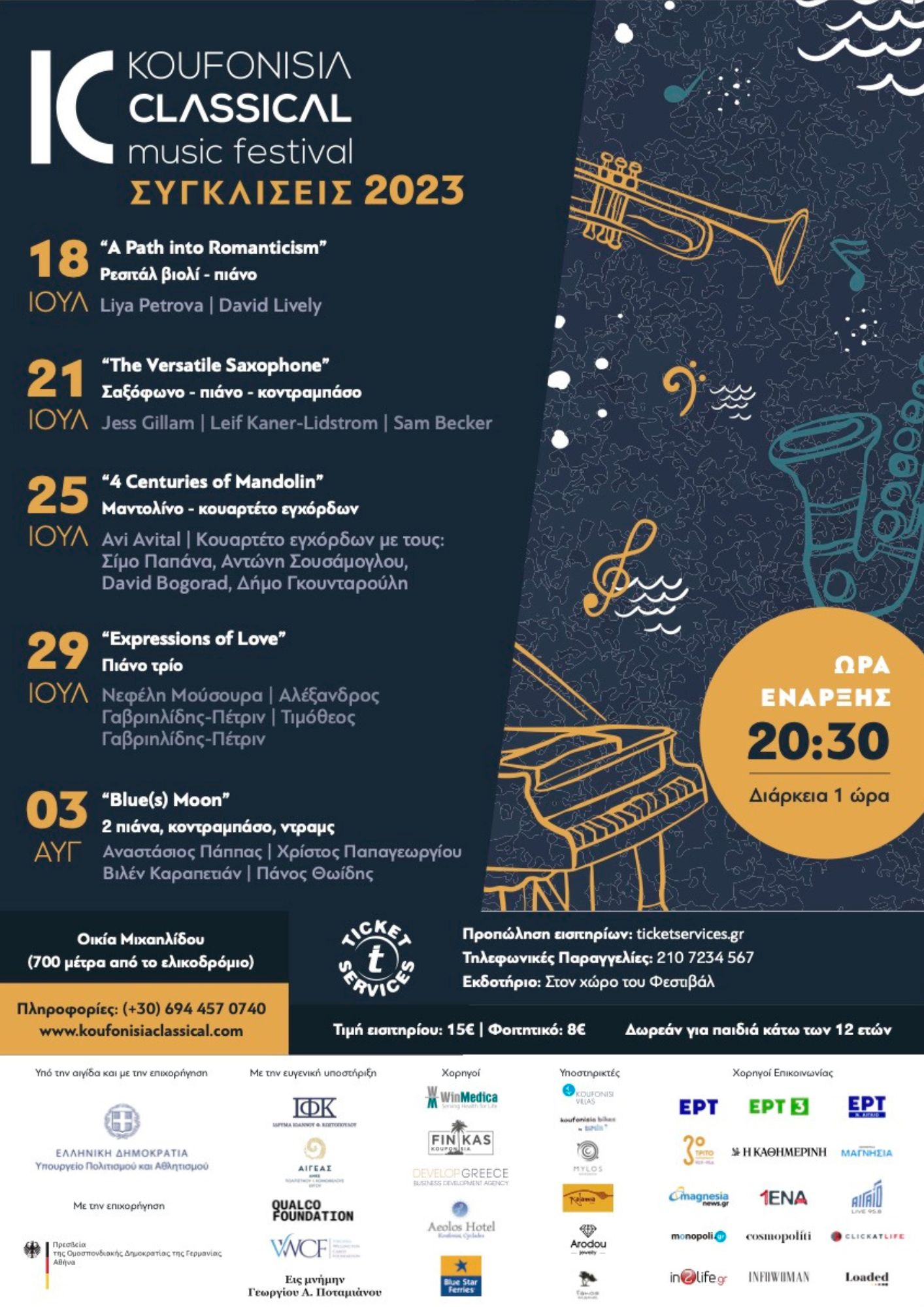 Το Φεστιβάλ Κλασικής Μουσικής Κουφονησίων επιστρέφει για όγδοη συνεχή χρονιά με ένα πολυποίκιλο πρόγραμμα εκδηλώσεων, υπό την καλλιτεχνική επιμέλεια του ιδρυτή του, μαέστρου και πιανίστα, Κορνήλιου Μιχαηλίδη, διατηρώντας την υψηλή καλλιτεχνική ποιότητα για την οποία διακρίνεται όλα αυτά τα χρόνια.