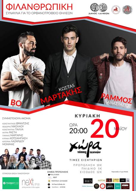 Πιο συγκεκριμένα, όπως αναφέρεται σε σχετική ανακοίνωση, «στις 20 του Μάη 11 καλλιτέχνες, μικροί και μεγάλοι, γνωστοί και ανερχόμενοι, βρίσκονται στον ίδιο τόπο, στην ίδια σκηνή και βάζουν τα δυνατά τους για να βοηθήσουν το Ορφανοτροφείο Θηλέων. Όταν οι άνθρωποι, οι φωνές και οι ομάδες ενωθούν, τότε υπάρχει ελπίδα για τα πάντα και μπορούμε να τα καταφέρουμε όλα. Την Κυριακή 20 Μαΐου 2018 όλη η πόλη της Λαμίας ενώνεται.
