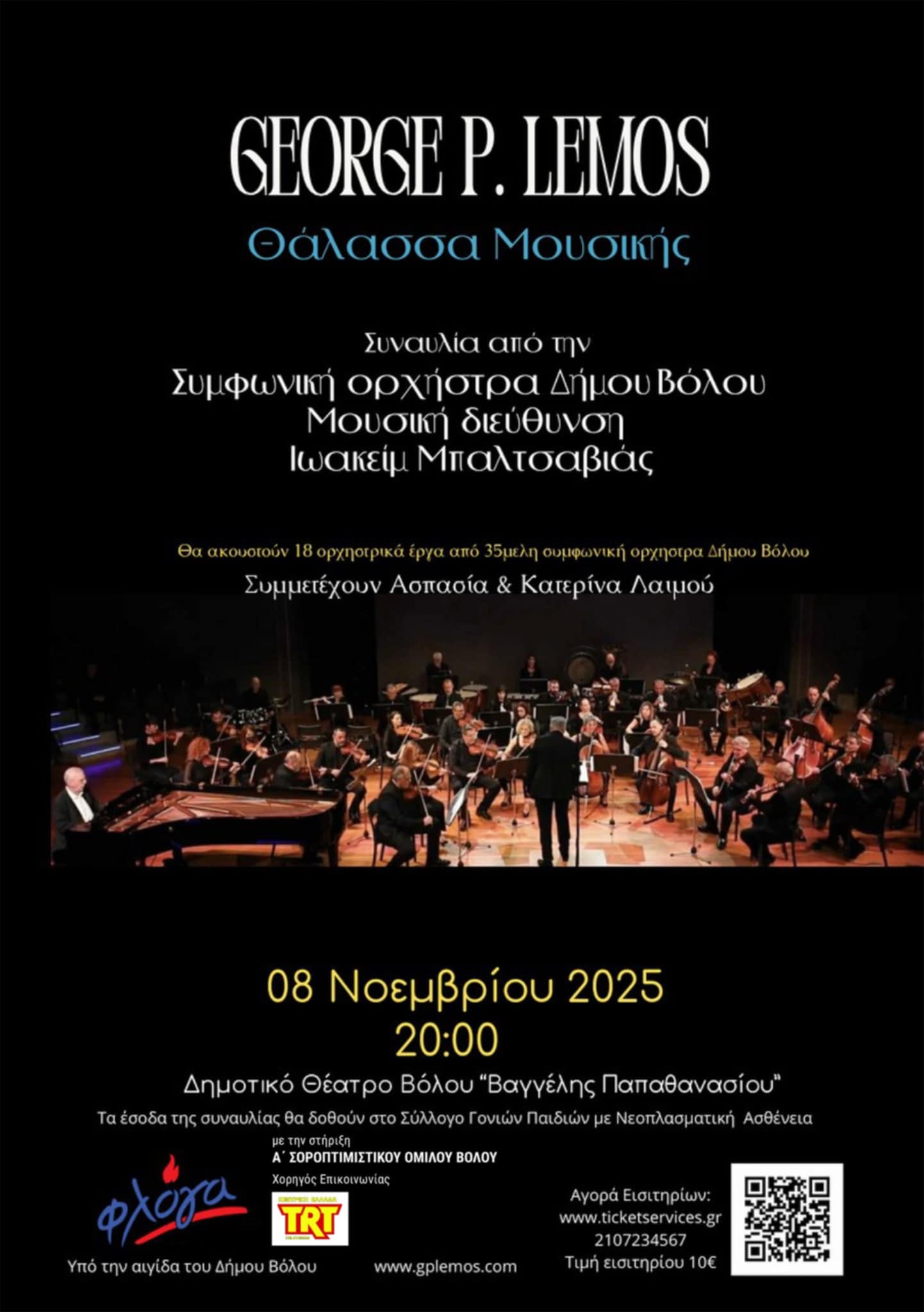 Παράλληλα, το Σάββατο 8 Νοεμβρίου, στις 20:00 στο Δημοτικό Θέατρο Βόλου «Βαγγέλης Παπαθανασίου» θα φιλοξενηθεί μία μοναδική συναυλία με τίτλο «Θάλασσα Μουσικής», με έργα του συνθέτη Γιώργου Λαιμού.