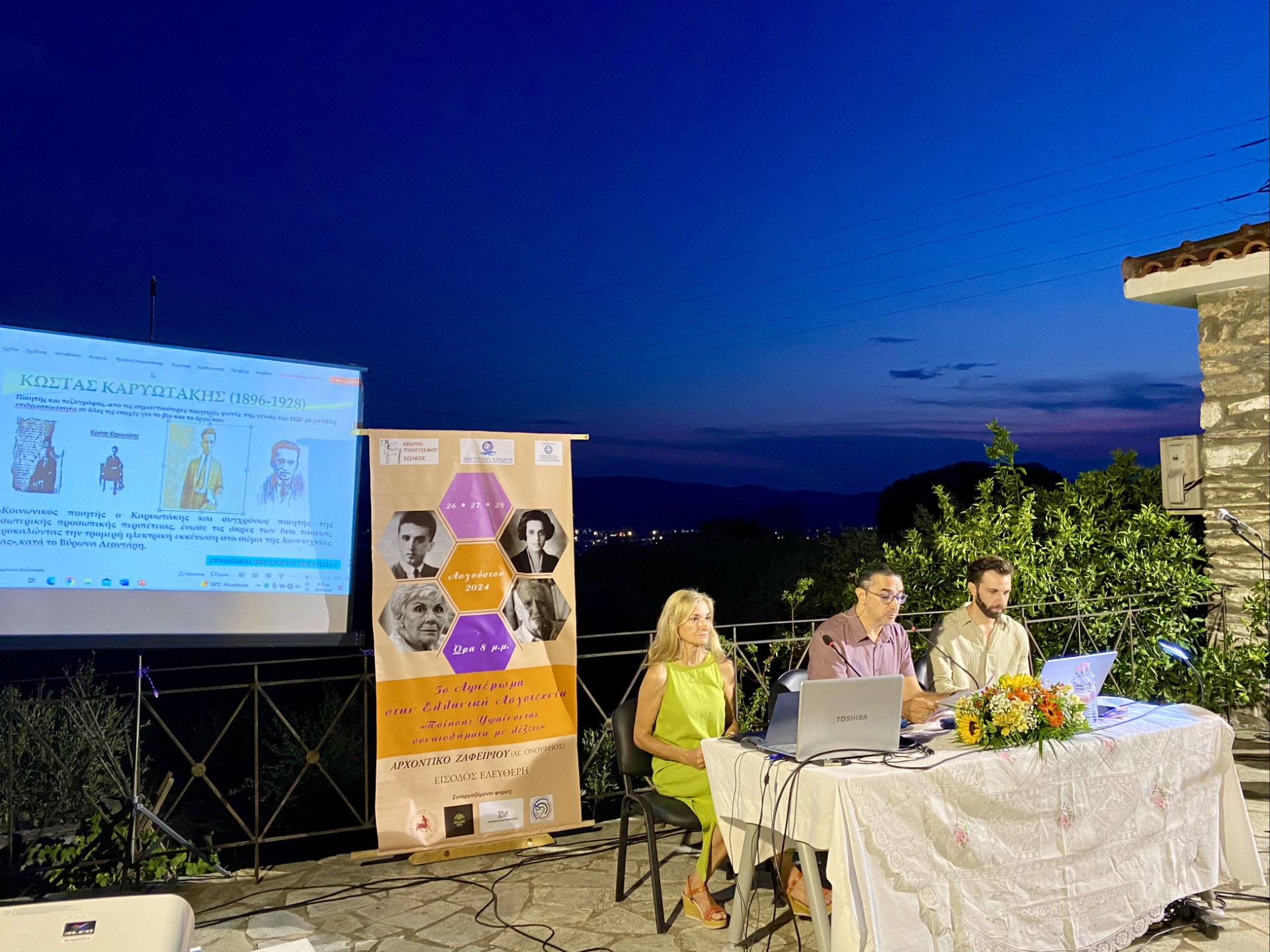 Ποιήματά του θα διαβάσει ο ίδιος ο ποιητής. Σύντομο Μουσικό πρόγραμμα με τον Κων/νο Βουρλή -πιάνο και Γιολάντα Αμαξοπούλου τραγούδι. Συντονισμός : Σπύρος Κιοσσές, αναπλ. Καθηγητής Πανεπιστημίου Θεσσαλίας. Την επιμέλεια των power points, έχει ο Σύνδεσμος Φιλολόγων Μαγνησίας. Η είσοδος είναι ελεύθερη.