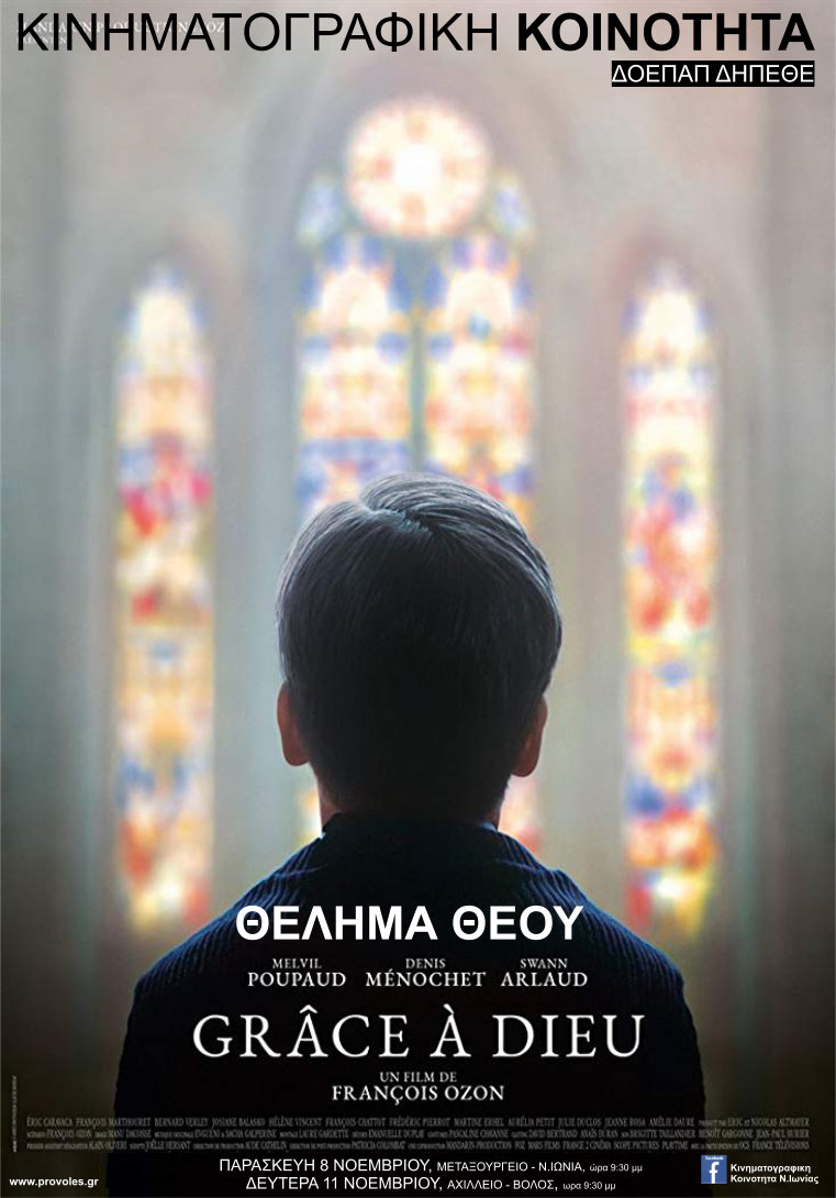 «Θέλημα Θεού» Grâce à Dieu, Γαλλία, 2019, Σκηνοθεσία: Φρανσουά Οζόν. Σενάριο: Φρανσουά Οζόν. Φωτογραφία: Μανουέλ Ντακός. Μοντάζ: Λορ Γκαρντέτ. Μουσική: Eβγκένι και Σάσα Γκαλπερίν. Πρωταγωνιστούν: Μελβίλ Πουπό, Ντενίς Μενοσέ, Σουάν Αρλό, Ζοσιάν Μπαλασκό, Ερίκ Καραβακά. Διάρκεια: 137 λεπτά