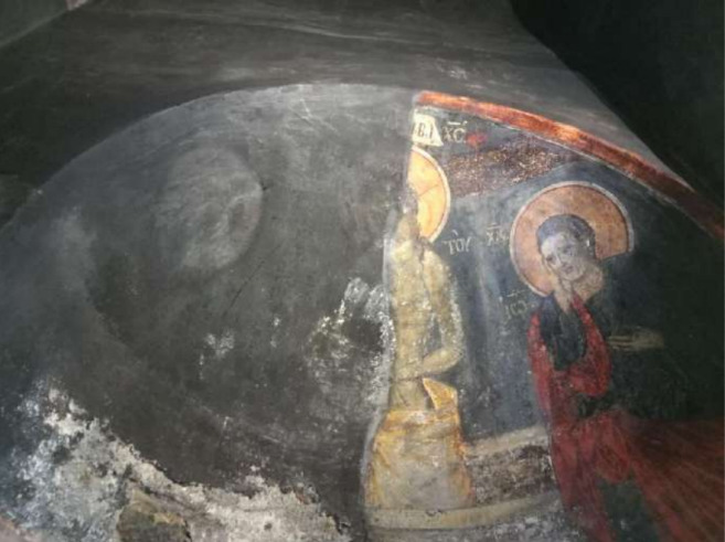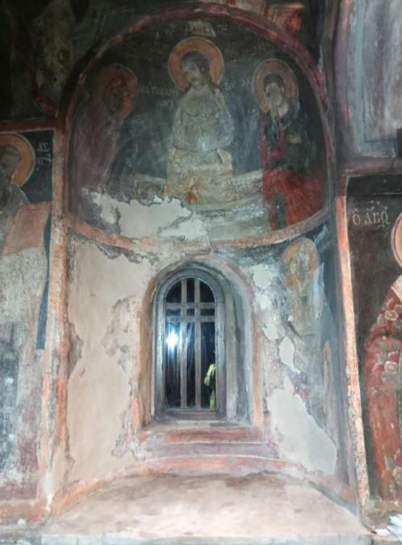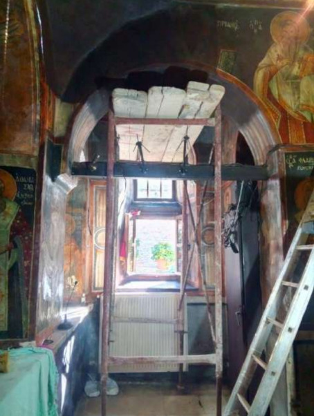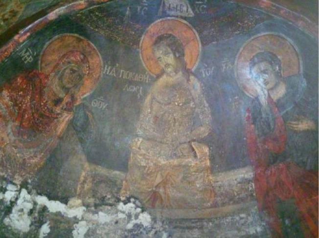 Οι εργασίες συντήρησης που πραγματοποιήθηκαν είναι οι εξής: .Στερέωση υποστρώματος. Στερέωση ζωγραφικού στρώματος. Απομάκρυνση νεότερων κονιαμάτων. Στεφανώματα – Στοκαρίσματα. Καθαρισμός ζωγραφικής επιφάνειας. Αφαίρεση του τσιμεντοχρώματος μπορντό απόχρωσης που καλύπτει το τμήμα του τοίχου κάτω από τις κόγχες όπου τελικά υπάρχει διακοσμητικό μοτίβο. Αισθητική αποκατάσταση.