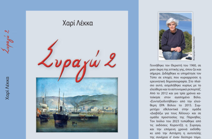 Οι εκδόσεις ΑΣΤΑΡΤΗ παρουσιάζουν το νέο μυθιστόρημα της δημοσιογράφου Χάρις Λέκκα «Συραγώ 2». Πρόκειται για ένα αυτοτελές ιστορικοκοινωνικό μυθιστόρημα με πλούσια λαογραφικά στοιχεία −συνέχεια του «Συραγώ»− το οποίο εκτυλίσσεται στην ταραγμένη περίοδο από το 1917 ως το 1930 σε Μαγνησία, Θεσσαλονίκη και Αθήνα.