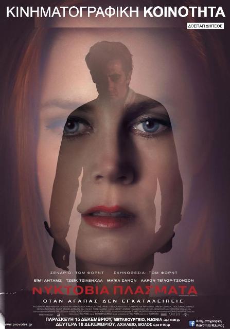 Με την ταινία “Νυκτόβια Πλάσματα”, σε σκηνοθεσία Τομ Φορντ συνεχίζονται οι προβολές της κινηματογραφικής κοινότητας του ΔΟΕΠΑΠ-ΔΗΠΕΘΕ του Δήμου Βόλου. Η ταινία θα προβληθεί σήμερα Παρασκευή 15 Δεκεμβρίου στο Μεταξουργείο στην Ν.Ιωνία (έναρξη 21:30) και την Δευτέρα 18 Δεκεμβρίου στο Αχίλλειο στις 21:15 (έναρξη 21:30).