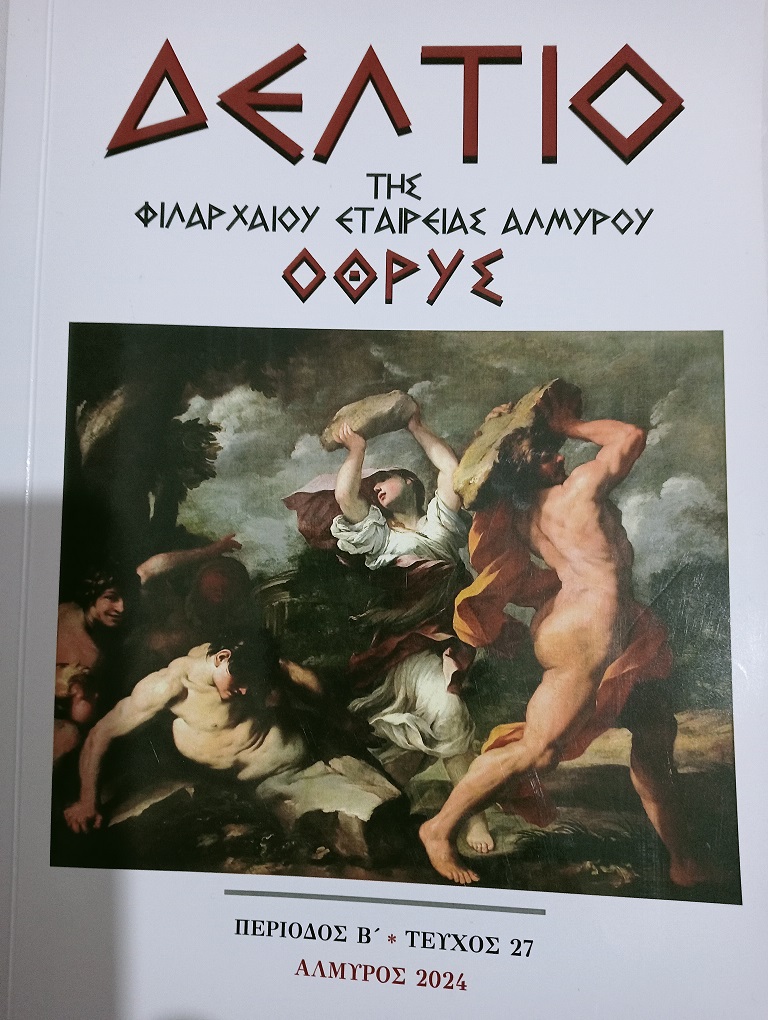 Η Φιλάρχαιος Εταιρεία Αλμυρού παρουσιάζει το 27ο τεύχος του Δελτίου της το Σάββατο 21 Δεκεμβρίου στις 6:00μμ στο Πολιτιστικό Κέντρο Δήμου Αλμυρού.