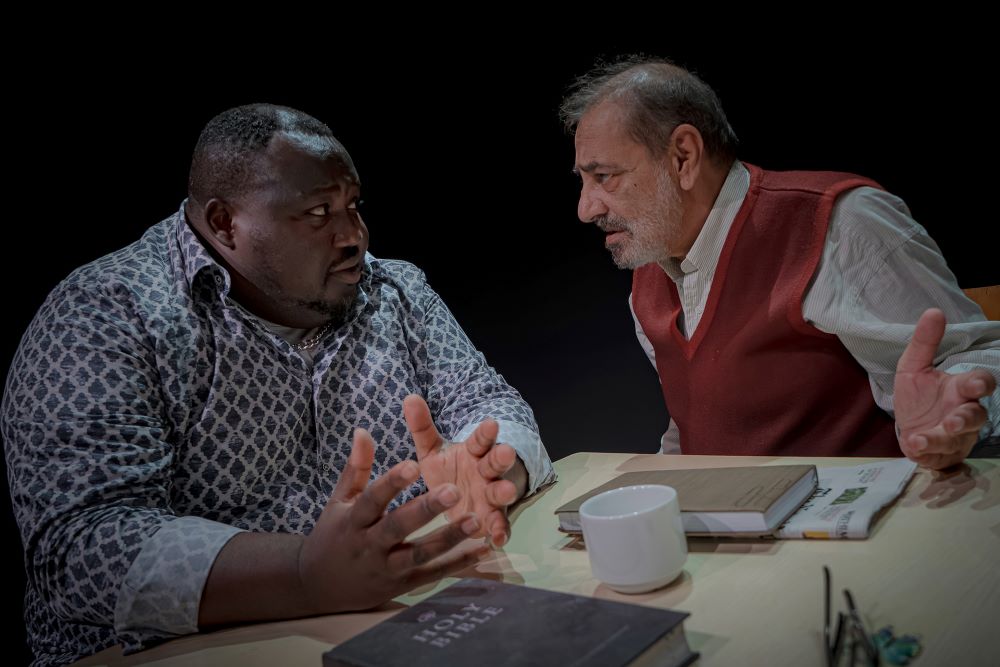 Λίγα λόγια για το έργο: Με επίκεντρο τη φορτισμένη συνομιλία ανάμεσα σε δύο άνδρες -έναν βαθιά πιστό πρώην κατάδικο και έναν καθηγητή πανεπιστημίου που βρίσκεται στο χείλος της αυτοκτονίας- το «Άσπρο-Μαύρο» είναι ένα έργο-πρόκληση για τον ηθοποιό και τον θεατή. Με χαρακτηριστικό υποδόριο χιούμορ, πυκνό λόγο και διανοητική ένταση, το έργο ξεδιπλώνει τον υπαρξιακό διάλογο δύο σχολών σκέψης που αναμετρώνται με το απόλυτο.