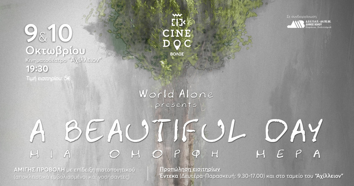 «Μπορούν τα σχολεία να βοηθήσουν στην οικοδόμηση μιας “διαφορετικής” μελλοντικής κοινωνίας;» Το φεστιβάλ ντοκιμαντέρ CineDoc Βόλου επιστρέφει δυναμικά αύριο, Σάββατο 9 Οκτωβρίου, ώρα 19.30, στον κινηματογράφο «Αχίλλειον» με το βραβευμένο ντοκιμαντέρ «Μια Όμορφη Μέρα» των Δάνη Καραϊσαρίδη και Γιώργου Πατεράκη (2021), με κεντρικό θέμα τη χρήση μη-συμβατικών μεθόδων και ιδεών στον τομέα της εκπαίδευσης και σε συνδιοργάνωση με τη Διεύθυνση Πολιτισμού του ΔΟΕΠΑΠ-ΔΗΠΕΘΕ του Δήμου Βόλου, σύμφωνα με ανακοίνωση.