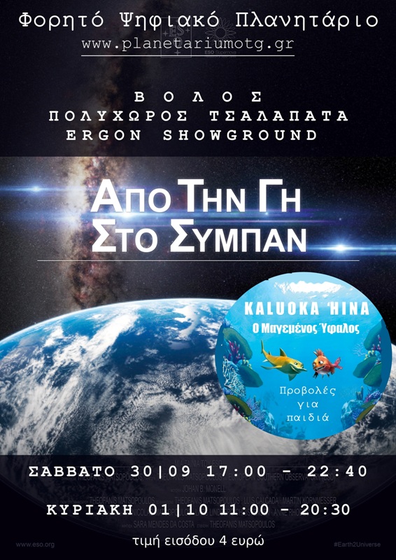 Ο πολυχώρος του Ergon Showground διοργανώνει ένα διήμερο προβολών με το Φορητό Ψηφιακό Πλανητάριο στον Πολυχώρο Τσαλαπάτα στον Βόλο