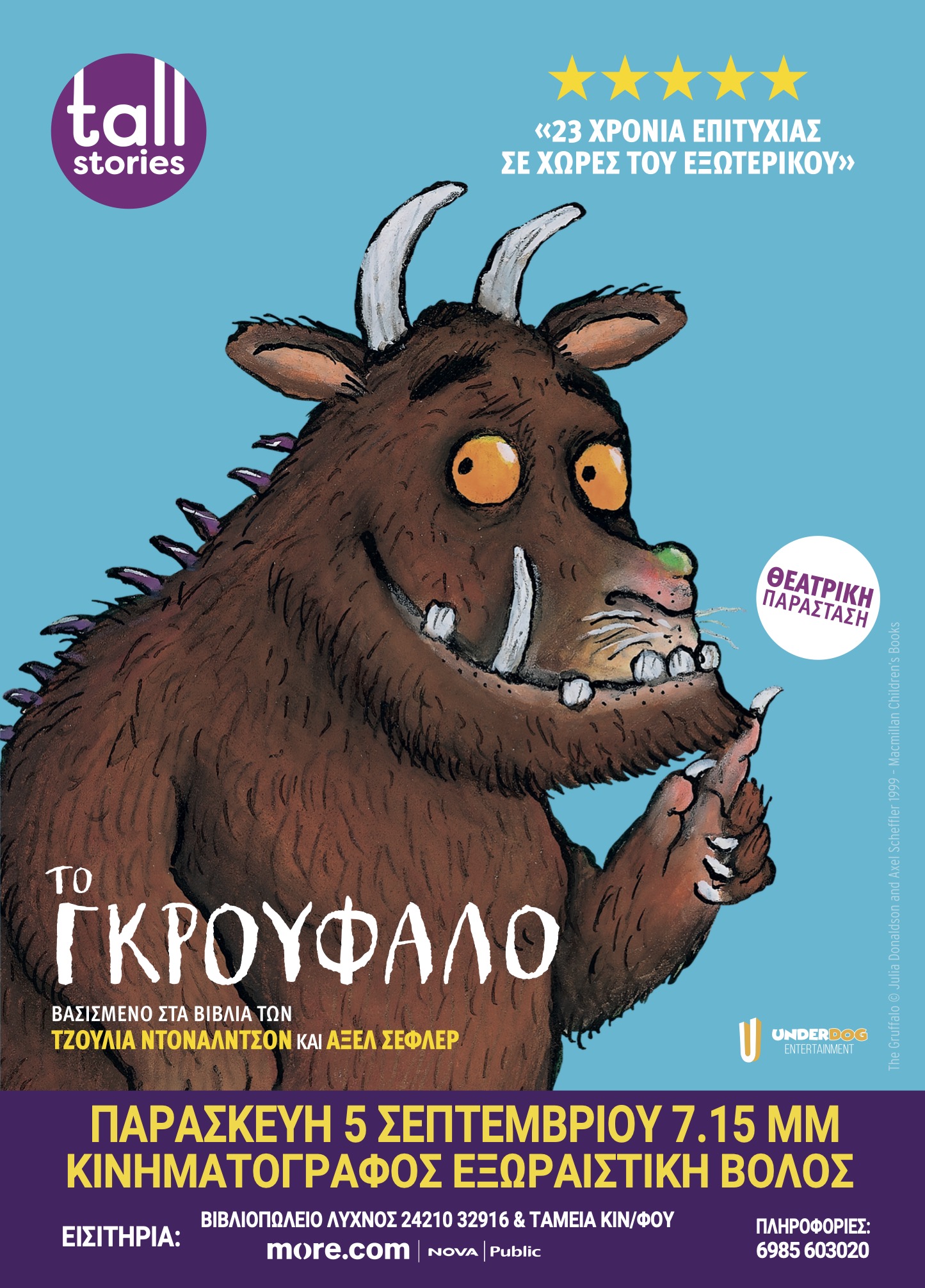«Το Γκρούφαλο», η θεατρική παράσταση βασισμένη στα ομώνυμα βιβλία των Τζούλια Ντόλαντσον και Άξελ Σέφλερ έρχεται και στον Βόλο στο Cine Εξωραϊστική την Παρασκευή 5 Σεπτεμβρίου στις 19:15.