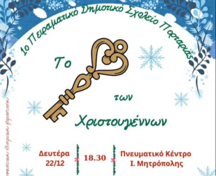 Οι μαθητές/τριες του 1ου Πειραματικού Δημοτικού Σχολείου Πορταριάς, ετοιμάζονται ν’ ανακαλύψουν το πραγματικό νόημα των εορτώ, στη φετινή θεατρική παράσταση, με τίτλο «Το Κλειδί των Χριστουγέννων», τη Δευτέρα 22 Δεκεμβρίου στις 18:30 και στο Πνευματικό Κέντρο Δημητριάδος.