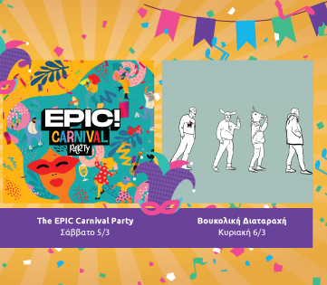 Το καρναβαλικό εορταστικό κλίμα στο Lab Art έχει ξεκινήσει και το Σάββατο βράδυ 5 Μαρτίου το EPIC επιστρέφει στο Βόλο για ένα ΕΚΡΗΚΤΙΚΟ ΚΑΡΝΑΒΑΛΙΚΟ Party!