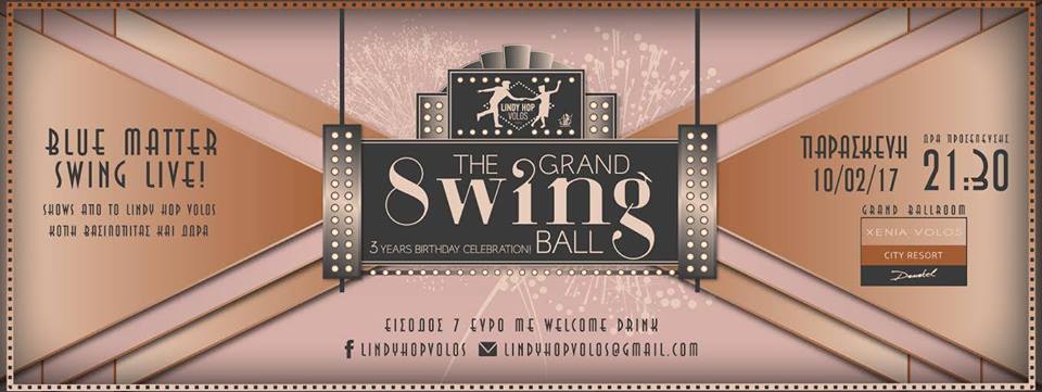 Το Lindy Hop Volos παρουσιάζει για δεύτερη φορά το επιτυχημένο Swingball με ένα πολύ δυνατό LIVE από τους αγαπημένους BLUE MATTER SWING, που θα μεταφέρουν στην ατμόσφαιρα της χρυσής εποχής της Jazz & Swing μουσικής.