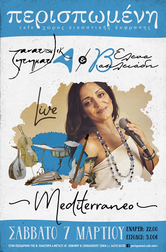Το βράδυ του Σαββάτου 7 Μάρτιου 2020 στις 22.00, το μουσικό σχήμα “Ανατολικά Ζητήματα” συναντούν στην σκηνή την ερμηνεύτρια Έλενα Βασιλειάδη στο καφέ-χώρο εικαστικής έκφρασης “Περισπωμένη”, στον πεζόδρομο της Ν.Πλαστήρα 4β, στην περιοχή του Αγ. Κωνσταντίνου.