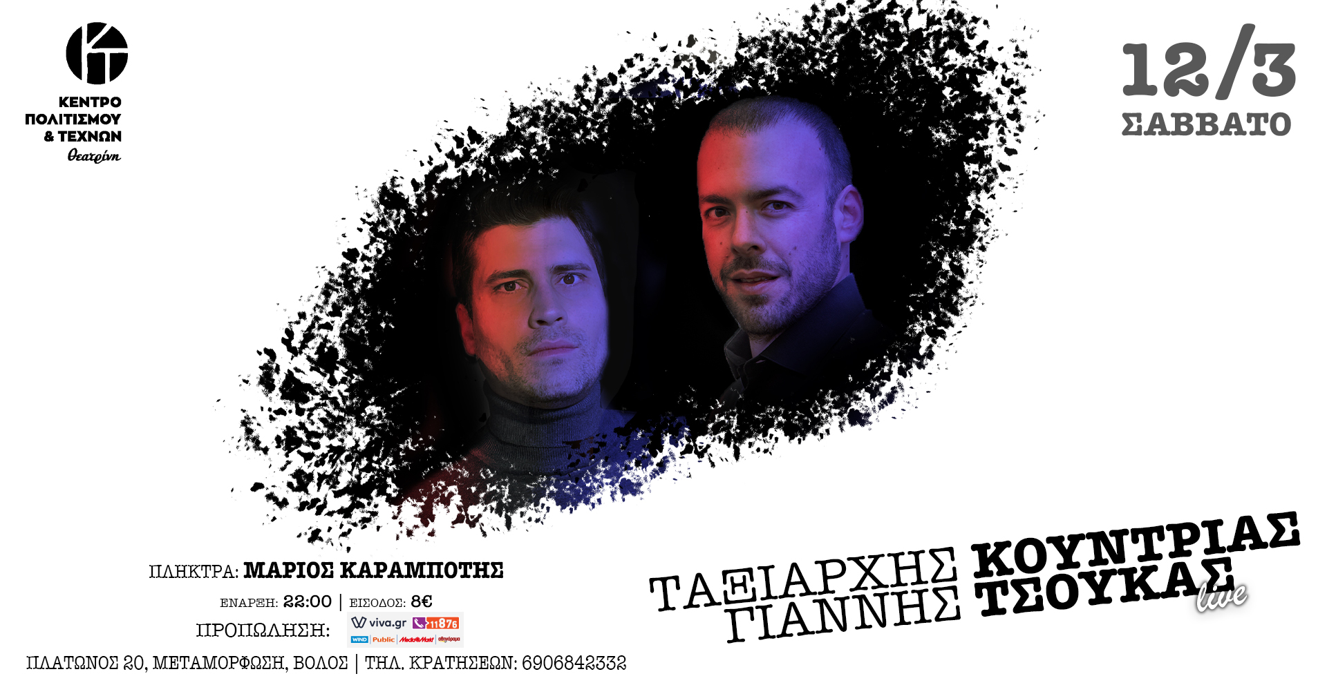 Το Σάββατο 12 Μαρτίου στις 22:00 και στο Κέντρο Πολιτισμού και Τεχνών “Θεατρινή”, ο Ταξιάρχης Κούντριας και ο Γιάννης Τσούκας μοιράζονται τη σκηνή προσφέροντας συγκίνηση αλλά και διασκέδαση. Ένα μουσικό πρόγραμμα από τον Σαββόπουλο, στον Μαχαιρίτσα, τον Στόκα ως τη Μαρινέλλα, τη Βάνου, τον Πάριο κ.α. Για όλα εκείνα που χορέψαμε ξέφρενα, αφιερώσαμε με δάκρυα στα μάτια αλλά και μας έκαναν να νοσταλγήσουμε.