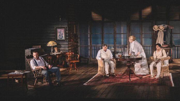 Νύχτα, ομίχλη, ουίσκι… Η Μαίρη, ο Τάιρον, ο Τζέιμυ κι ο Έντμοντ… κι οι χαμένες ελπίδες τους, εγκιβωτισμένες σε ένα σπίτι φτιαγμένο με τα πιο πρόχειρα υλικά γεμάτο ανασφάλεια, πασχίζουν για την ένωση οίκου και γένους στην παραλιακή εξοχή… σαν κύματα τα άπιαστα όνειρα μιας ζωής νοτίζουν το πρόσωπό τους. Κάτω απ’ τα ρούχα εποχής, αρρωστημένοι ψυχισμοί σε δρύινο τραπέζι, θολώνουν τα ποτήρια καθώς αλληλοσυγκρούονται προπόσεις… υπέρ υγείας.
