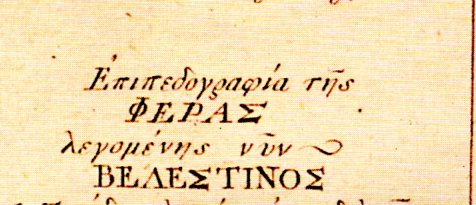 Σημειώνουμε ότι ο Ρήγας Βελεστινλής στην «Χάρτα» του, Βιέννη 1797, την γενέτειρά του την μνημονεύει ως «Βελεστίνος», («Επιπεδογραφία της Φεράς λεγομένης νυν Βελεστίνος») όπως επίσης και οι Δημητριείς «Βελεστίνος» αναγράφουν στην «Γεωγραφία νεωτερική», Βιέννη 1791.