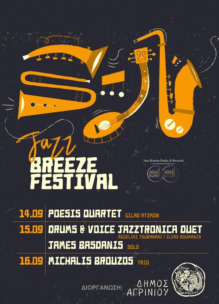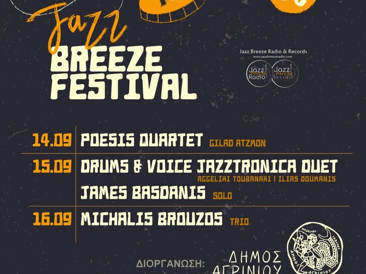 Τριήμερο Jazz Breeze Festival θα πραγματοποιηθεί στο Αγρίνιο, ένα Φεστιβάλ που διοργανώνει ο Δήμος Αγρινίου από τις 14 έως τις 16 Σεπτεμβρίου και στο οποίο θα συμμετέχει και ο Βολιώτης καλλιτέχνης James Μπασδάνης. Το Φεστιβάλ περιλαμβάνει ζωντανές εμφανίσεις καλλιτεχνών διεθνούς φήμης, ραδιοφωνικές εκπομπές, σεμινάρια μουσικής και performance από τους καλλιτέχνες που θα συμμετάσχουν στο Φεστιβάλ. Θα διεξαχθεί επίσης καλλιτεχνικός διαγωνισμός για τοπικούς μουσικούς δημιουργούς και καλλιτέχνες, με σκοπό την δημιουργία μουσικών έργων και την προώθησή τους.