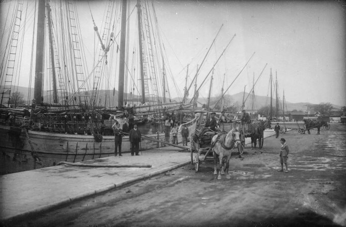 Το πανύψηλο μαύρο φουγάρο του κατάλευκου πλοίου της γραμμής έκανε την εμφάνισή του στο λιμάνι. Ο γνώριμος ήχος από τρία στεντόρεια σφυρίγματα τράβηξε την προσοχή όσων το περίμεναν. Οι παραγγελιοδόχοι, οι πράκτορες, οι μικροέμποροι και οι κάθε λογής χαμάληδες πανέτοιμοι με τις καρότσες τους και τα κάρα τράβηξαν από τη μεριά που γινόταν το ξεφόρτωμα. Οι ταξιδιώτες και αυτοί που περίμεναν δικούς τους, παραταγμένοι από την άλλη, έδειχναν ανυπόμονοι σηκώνοντας τους γιακάδες τους για να προστατευτούν από το τσουχτερό πρωινό αγιάζι. Το ταχύπλοο «Ιθάκη» της ομώνυμης ατμοπλοΐας που πρακτόρευαν οι αδελφοί Ν. και Σ. Τσαλαπάτα, γλιστρώντας αθόρυβα στο θαμπό γυαλί της θάλασσας, έριξε άγκυρα αρόδο. Ευθύς, το πλεύρισαν οι λέμβοι και φορτηγίδες πιάνοντας δουλειά. Από την μπουκαπόρτα του πλοίου ξεχύθηκε όσος κόσμος είχε απομείνει για τον τελευταίο σταθμό, μετά τη Χαλκίδα, την Αιδηψό και τους Ωρεούς, που ήταν ο Βόλος. Πρώτα οι επιβάτες της τρίτης και δεύτερης θέσης ανάμεικτα με φορτωτικές και ξύλινα κιβώτια. Στη συνέχεια, οι ελάχιστοι της πρώτης μαζί με τις αποσκευές τους που τις είχαν ζαλικωθεί οι αεικίνητοι καμαρότοι. Επί της αποβάθρας, μια μικρή σειρά από άμαξες και υποζύγια τους περίμενε όλους υπομονετικά.