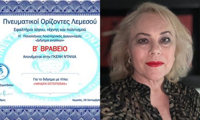 Βράβευση της Γκέλης Ντηλιά στον Η’ Πανελλήνιο Λογοτεχνικό Διαγωνισμό των Πνευματικών Οριζόντων Λεμεσού
