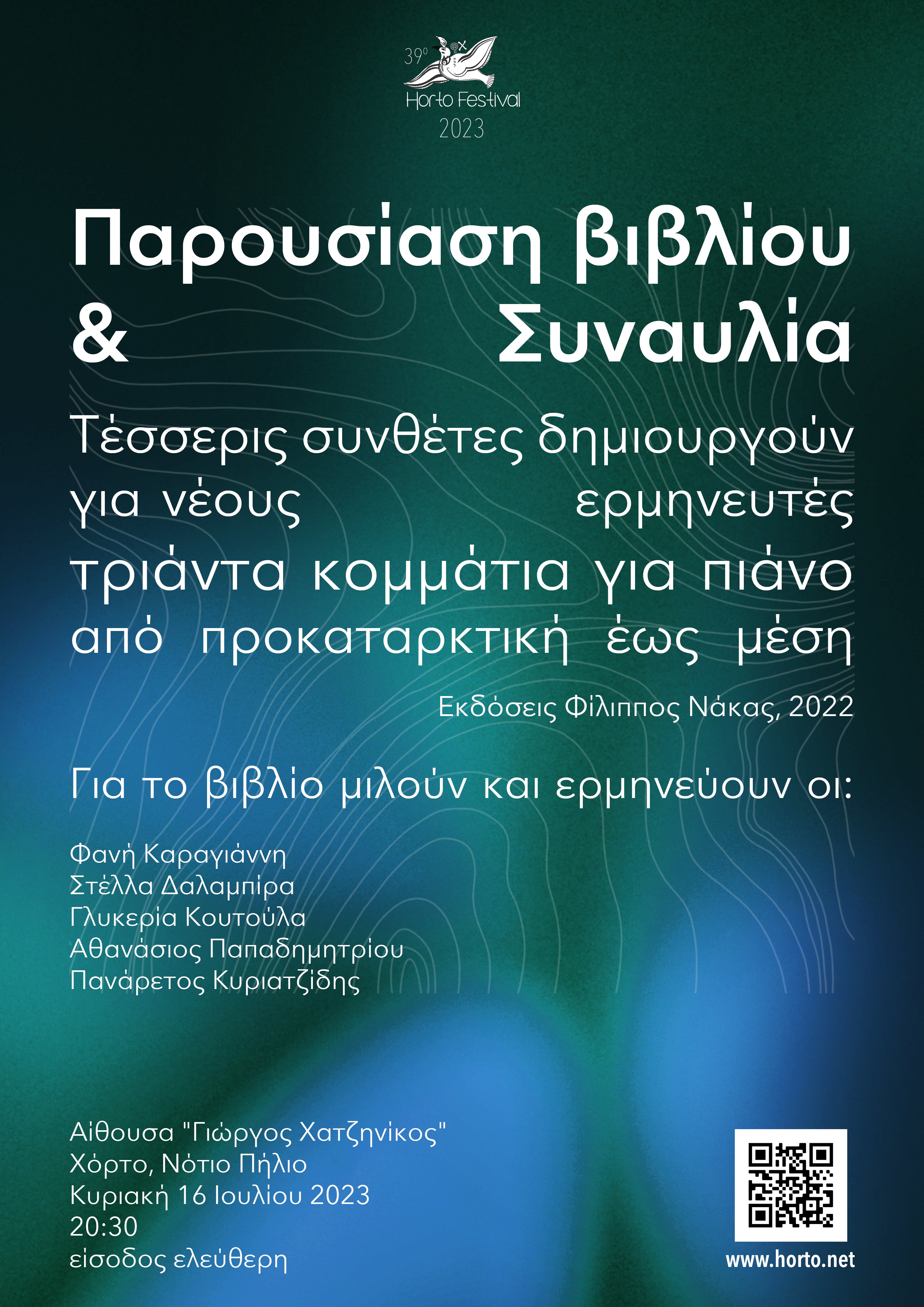 Το Χορωδιακό Ατελιέ για νέους διευθυντές χορωδιών με την καθοδήγηση της καθηγήτριας του Τμήματος Μουσικής του Πανεπιστημίου Μακεδονίας Μαρίας-Έμμας Μελιγκοπούλου θα καταφθάσει στην πιο γόνιμη περίοδο του καλοκαιρινού προγράμματος 19-24 Αυγούστου. Μαζί με την τελική συναυλία του εργαστηρίου στις 24 Αυγούστου, όπου χορωδοί πλάι στους μαέστρους θα παρουσιάσουν έργα του χορωδιακού ρεπερτορίου ανά τους αιώνας στο υπαίθριο θέατρο, στις 23 Αυγούστου το κοινό θα έχει την ευκαιρία να απολαύσει τις μουσικές καταθέσεις και προσωπικές αφηγήσεις των μαθητών του Γιώργου Χατζηνίκου σε ένα συλλογικό ρεσιτάλ στην αίθουσα όπου ο ίδιος δίδασκε στα θερινά σεμινάρια. Ενώ θα ακολουθήσει στις 30 Αυγούστου ένα ακόμα ξεχωριστό ρεσιτάλ για κλαρινέτο και πιάνο από δύο Λαρισαίους καλλιτέχνες που έχουν από πολύ νέοι βρεθεί στα σεμινάρια του δασκάλου στο Χόρτο. Ο Στέλιος Κοτρώτσιος, κλαρινέτο και η Ιωάννα Σιοπούδη, πιάνο επιλέγουν να παρουσιάσουν τις δύο σονάτες του Johannes Brahms.