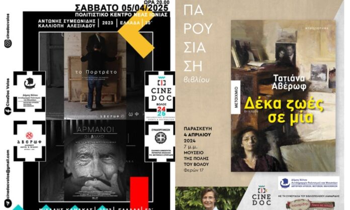 Τo Cinedoc Βόλου και η Διεύθυνση Αρχείων, Μουσείων, Βιβλιοθηκών της Αντιδημαρχίας Πολιτισμού και Μουσείων του Δήμου Βόλου, διοργανώνουν διήμερο εκδηλώσεων με παρουσίαση βιβλίου και διπλή προβολή ντοκιμαντέρ με ελεύθερη είσοδο.
